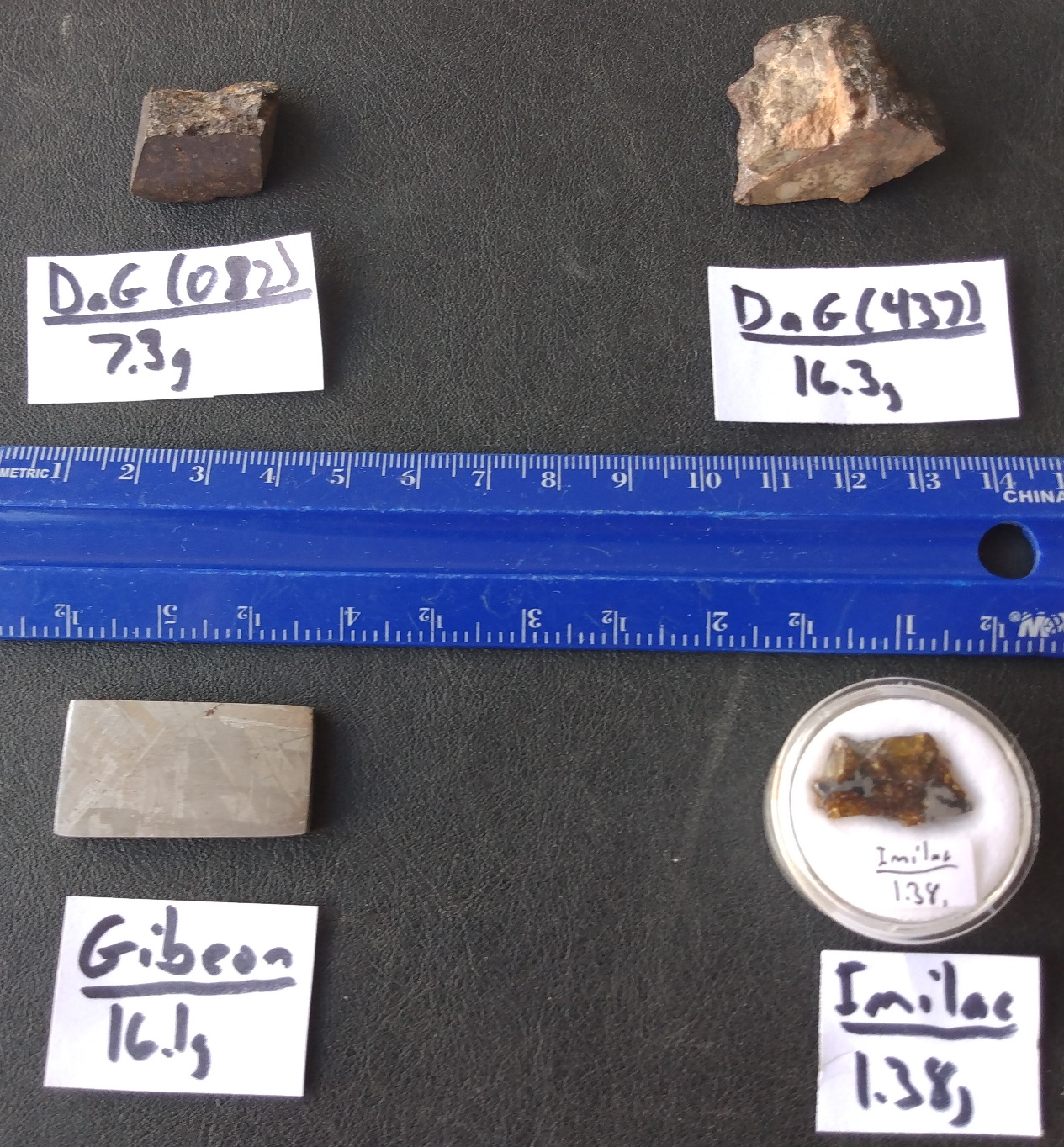 This is a small rectangular etched (on both sides) slice. I remember the days when I had LOTS of these. Right now, I think this my ONLY piece (aside from a small batch of similar pieces I have in deep, deep storage. I brought those back from Munich on the Concorde. I suspect that those are the only Gibeon pieces that have been back to supersonic speeds (a tiny tad over Mach 2) since their fall). I have this piece only because I had consigned it to a store in Ouray years ago. Unfortunately, health issues required the store’s owner to sell out and retire. The new owners did NOT want ANY consignment items. So, I “rediscovered” this piece while going through all the display cases looking for material of mine before the new owners got handed the keys (anything I left behind would become the new owner’s property in full). Years ago, this would have been a $20 piece maybe. Lately, I have heard things about etched Gibeon pieces selling for closer to $6 to $10/g lately!